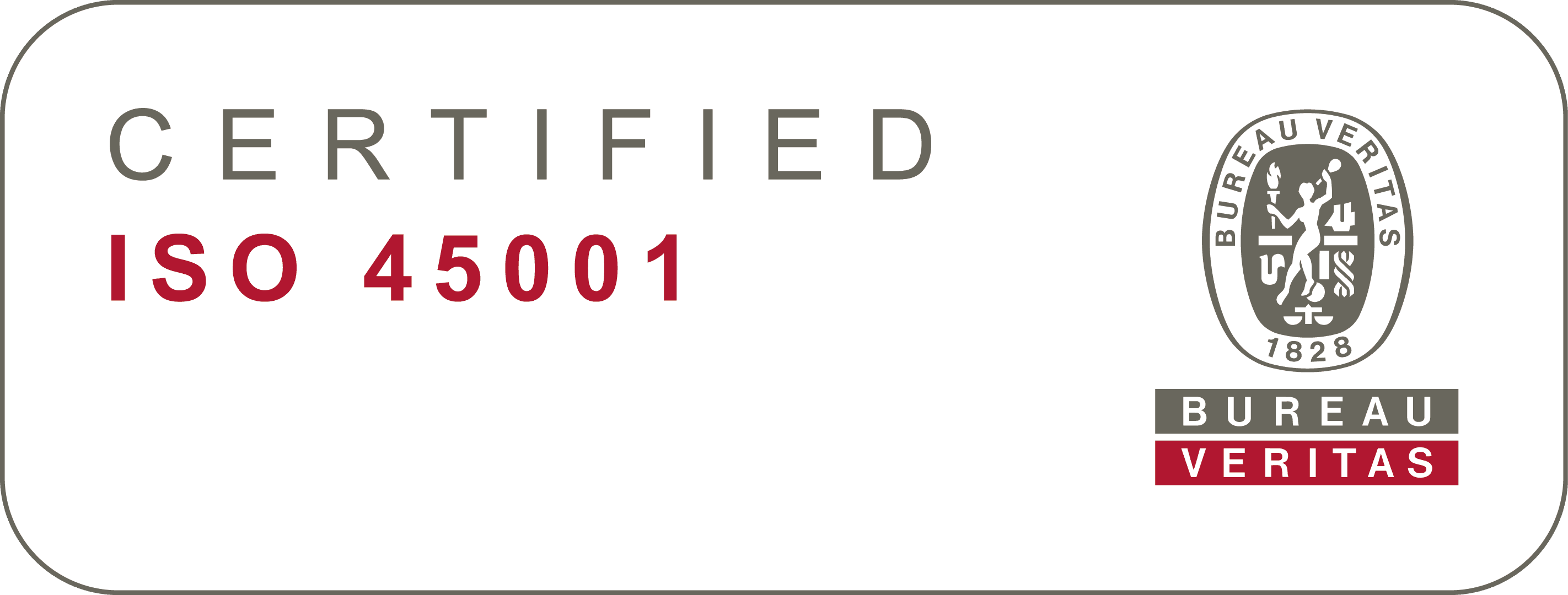 We are certified by Bureau Veritas in standards ISO 9001, ISO 14001 and ISO 45001